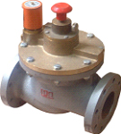4)、在第二級導(dǎo)閥中設(shè)置手動操縱機(jī)構(gòu),正常電控時手柄應(yīng)中位對刻線。當(dāng)需手控時,拉起操縱手柄即可開閥,壓下手柄即可關(guān)閥,可實現(xiàn)手操功能(Ф25、Ф50無)。